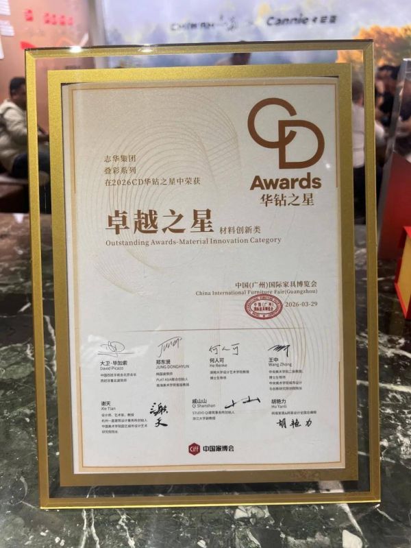 此次叠彩系列斩获的两大奖项,皆是家居行业含金量十足的权威认可,双重加冕更具行业分量。金定奖作为中国定制家居产业首个权威大奖,由行业专家、顶尖设计师与资深媒体联合评审,从创新性、环保性、市场价值等核心维度层层遴选,是定制家居材料领域的实力标尺;而华钻奖・卓越之星则是由中国家博会重磅打造的大家居全产业链权威评选,本届评选吸数百件作品同台角逐,特邀海内外设计大咖、学术权威与行业专家组成顶级评审团,以国际化视野和严苛标准,围绕创新、品质、美学、实用、可持续五大核心维度综合考评,卓越之星奖项的颁发,更是对产品设计高度、工艺品质与市场价值的双重肯定,是家居材料领域设计与品质的标杆荣誉。能在两大权威评选中同步脱颖而出,足以印证志华叠彩系列板材的硬核实力。