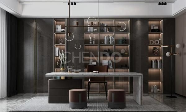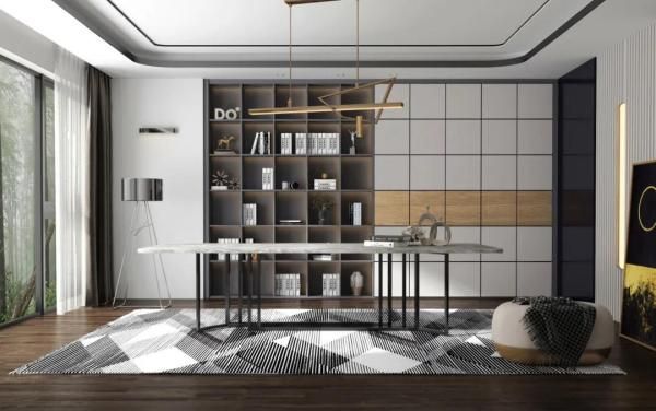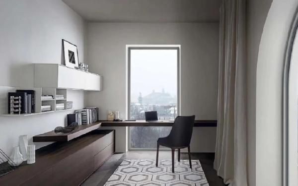 独立书桌+书柜是一种比较常见的做法,也比较简单,但是效果还挺好~在独立的书房里,搭配上自己喜欢的软装风格,绝对会羡煞旁人!
