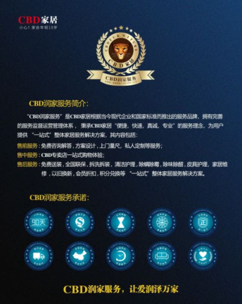 无论是智慧家居,还是全屋定制,涉及到上门测量、个性化设计、上门安装等服务,以及后续的使用与维护,都需要完善、高效、快速的售后服务做支持,为了让大家省时、省力、省心、更为放心!CBD家居推出了基于国家标准的“CBD润家服务”,秉承“便捷、快速、真诚、专业”的服务理念,经受住了市场考验,也让消费者省去了后顾之忧。
