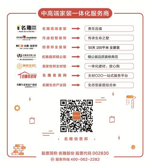 名雕佰恩邦全屋装最近推出新品惠客活动——《追光者》,从前期根据您实际户型的设计出图,还包含主材、辅材、施工、软装、定制柜等项目,全屋整装只需21.5万即全屋搞定,装修完工交付后,您可以随时拎包入住,无需自己再另外买家具、买软装,劳神费力去搭配等,从前期方案研发设计的时候,所有的这些因素已被考量进去,并且做到方案最优。您无需担心出来的效果差、格调不够等问题,因为早在一开始,由名雕佰恩邦200余人精英设计师组成的专项研发团队已经为您考虑到了。