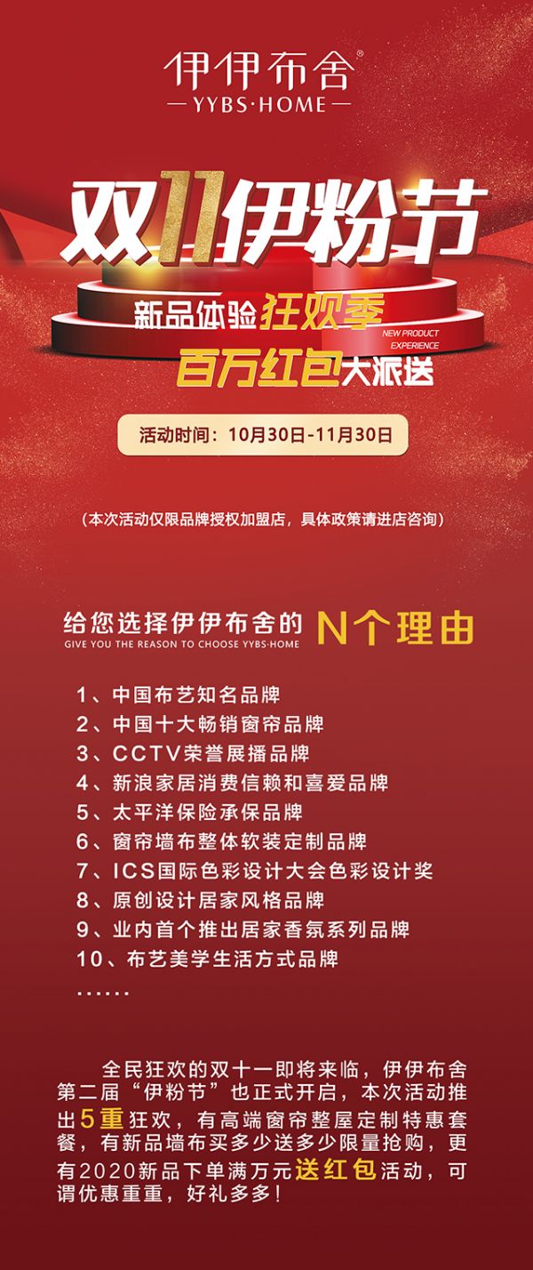 【伊伊布舍】双11伊粉节 新品体验狂欢季 百万红包大派送