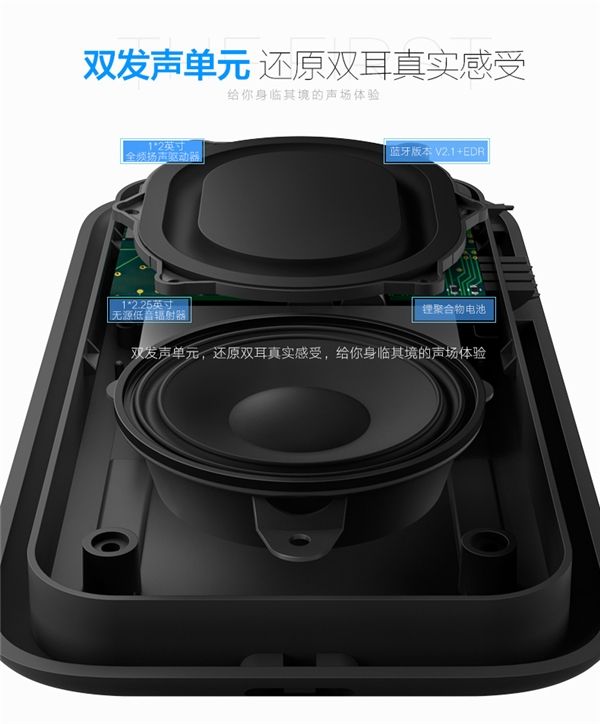 利浦BT3900蓝牙音箱双发声单元由全频单元+被动单元组成,低音效果满足听觉需要,还原这款飞双耳真实感受,给你身临其境的声场体验。