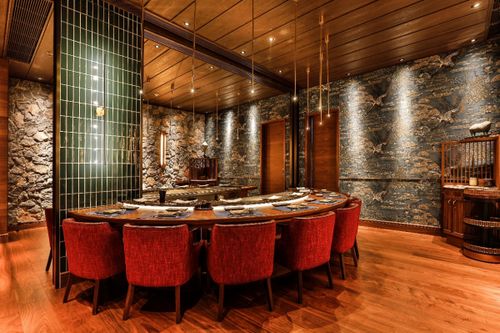 盐岩餐厅中的铁板烧餐区令人印象深刻,成为餐厅的核心。整个餐厅舒适优雅,风格质朴不凡。