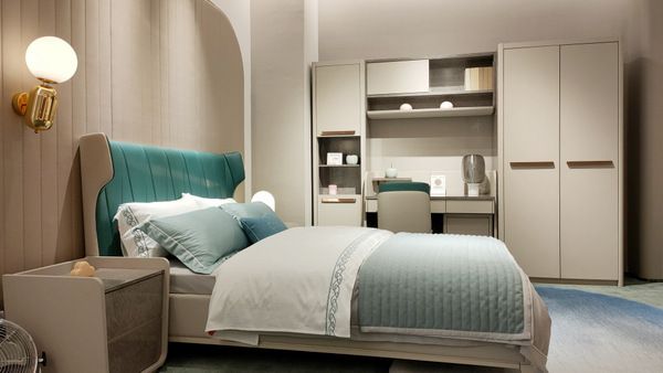 轻奢·宾利床头采用零溶剂超纤皮,即超细纤维增强皮革,质量非常稳定,具有优质的阻燃性能,即便用烟头烫表层超纤皮也不容易烂洞,或是用火点燃后不易产生明火,安全性更有保障。