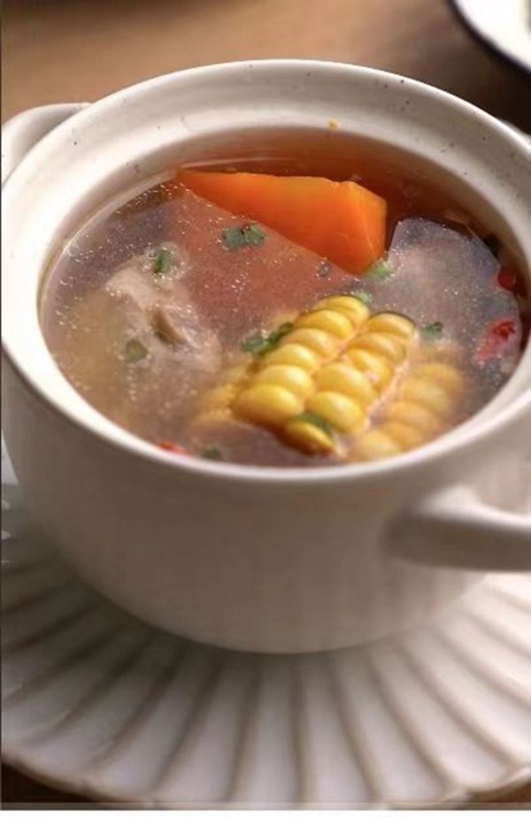 肋排300克,玉米一根,胡萝卜1根,葱结20克,姜片15克,盐2茶匙,料酒20毫升,枸杞5克。