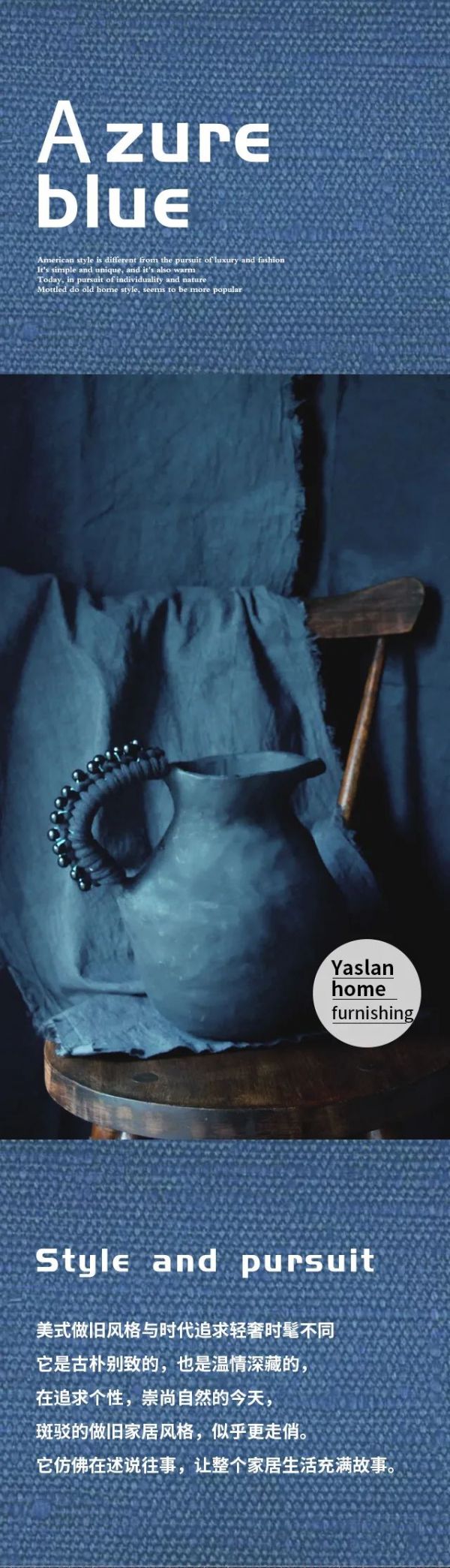 【YASLAN墙布窗帘】斑驳做旧风 湛蓝小时光