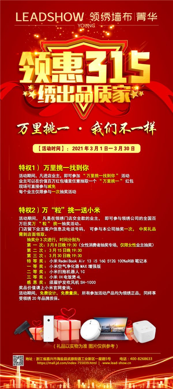 百万豪礼助力315品质盛典,墙布十大品牌领绣墙布全国让利!