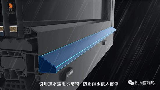 内腔排水结构设计,引用披水盖阻水结构,防止雨水侵入窗体,排水孔盖增加防风关闭装置,避免出现雨水倒灌的现象。