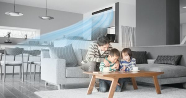 这一点,日立家用中央空调做的就很不错。出风口采用摆叶水平摆动+垂直摆动3D组合送风方式,可根据房间结构上送上回、侧送后回、侧送底回,不直吹人体,不带走人体水分,而且气流自上而下可以均匀覆盖室内空间,让家人在无形中全面享受到舒适温度,远离空调病。
