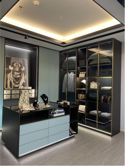 王总延伸地说,她在设计上花费了极大的心思,完全是按照体验馆的标准去打造的门店。她觉得店面的设计十分重要,比起以前常规的衣柜店那种只有柜子没有家的展现,她更希望能设计出一个所见即所得的家居体验空间。精致的样品,融入家装的设计氛围,再结合软装的搭配,当客户一走进店内就有家的感觉,这是王总想要打造出一个标杆的形象店的模样。