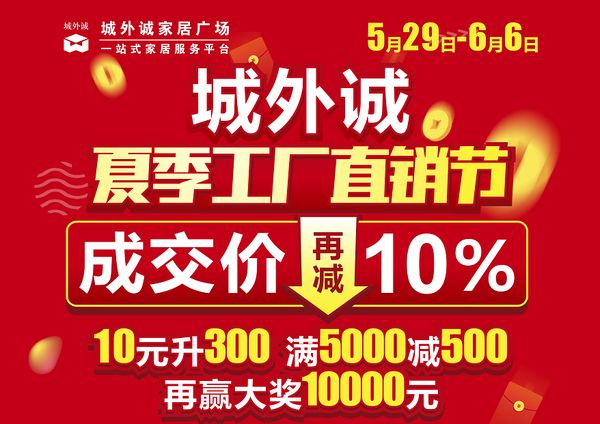 不过别急,城外诚家居广场即将于5月29日至6月6日开启下集工厂直销节,不仅百万补贴、千万满减、完全大奖以及五折爆款活动共同开启,更有成交价再减10%。岂能与如此薅羊毛的机会失之交臂?