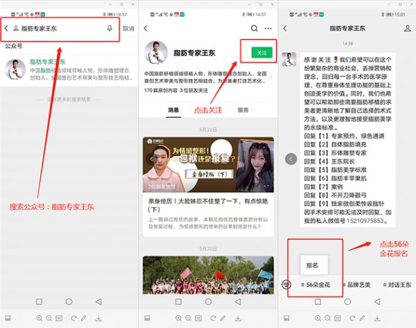活动自5月24日开始,关注“脂肪专家王东”公众号进入56朵金花菜单进行报名,报名及拉票截止到6月3日,6月11日报名选手参加线下终选。