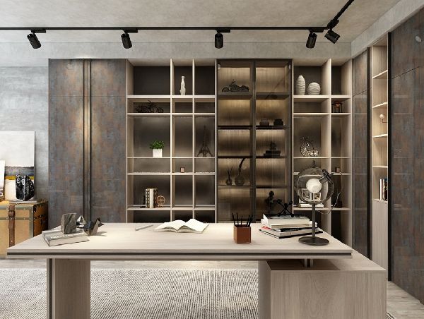 具有现代感的家庭办公室,领尚书柜“隐蔽式+开放式”储物设计并用,可按照阅读习惯进行书籍摆放,大量格子空间的划分也更便于书籍分类存放。开放式的书架顺着书桌的线条,创造出一个整体性的造型,尤其干净利落。