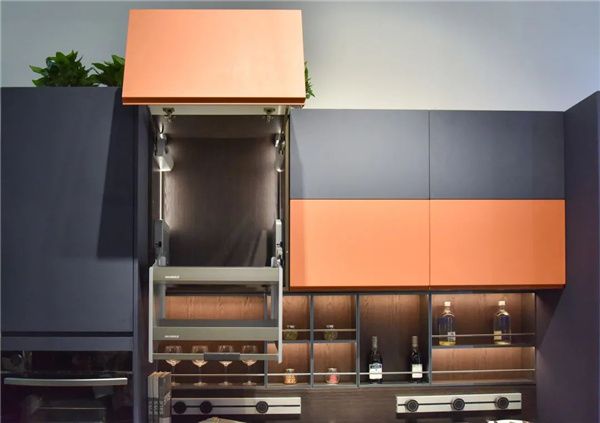 厨房空间使用领尚整体橱柜黛系列,即可搞定烹饪、用餐,收纳、清洁等多种功能,电动吊柜使上层空间也能被充分利用,外挂式移动插座可随处移动,让日常下厨取物、用电更方便。